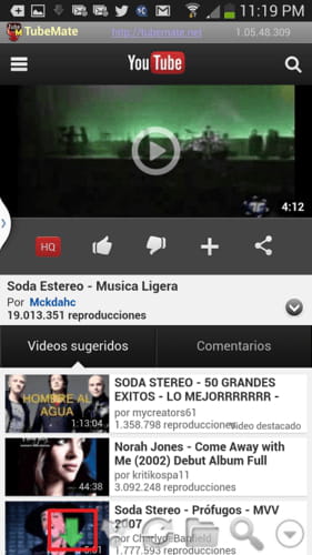Чтобы скачать видео с YouTube с интерфейса TubeMate, щелкните